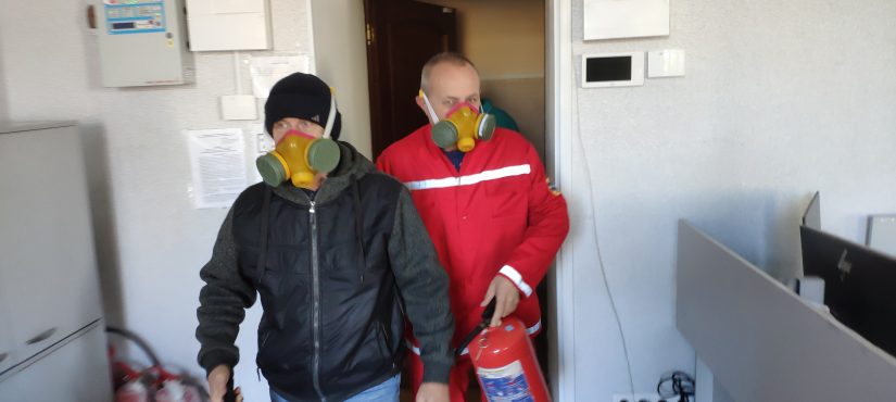 Одним з підготовчих заходів до тренування було проведення інструктажів щодо попередження помилкових дій працівників, які можуть призвести до нещасного випадку, пошкодження обладнання. Після навчань інженером з пожежної безпеки був проведений короткий інструктаж з користування вогнегасниками з наглядною демонстрацією їх використання.
