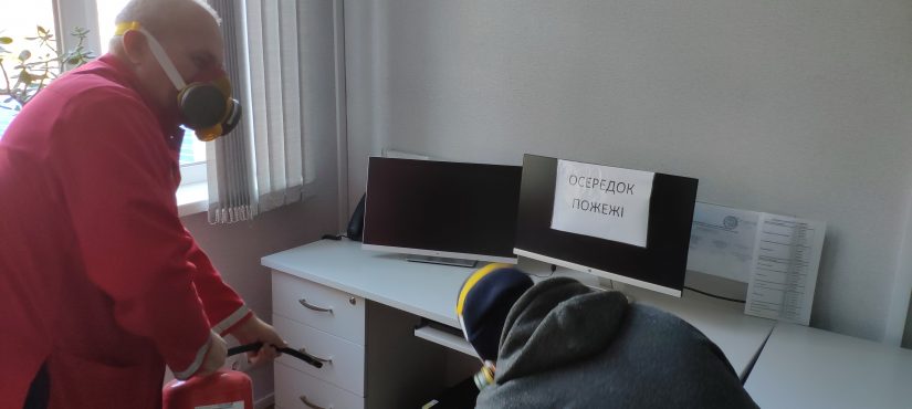 За легендою тренування в наслідок стрибка напруги спалахнула внутрішня проводка, яка призвела до умовного загоряння з сильним задимленням в диспетчерській ОДВ (2 поверх).